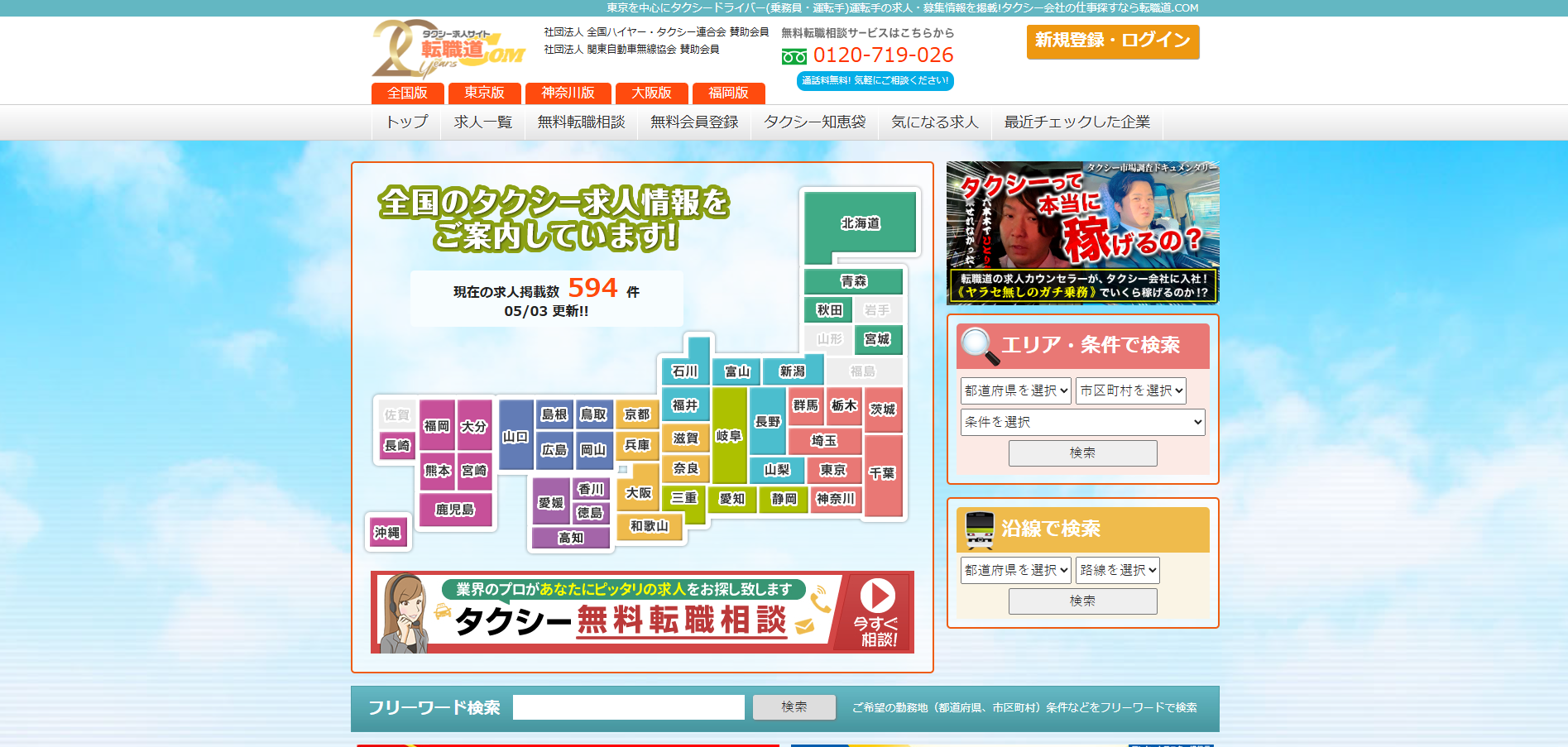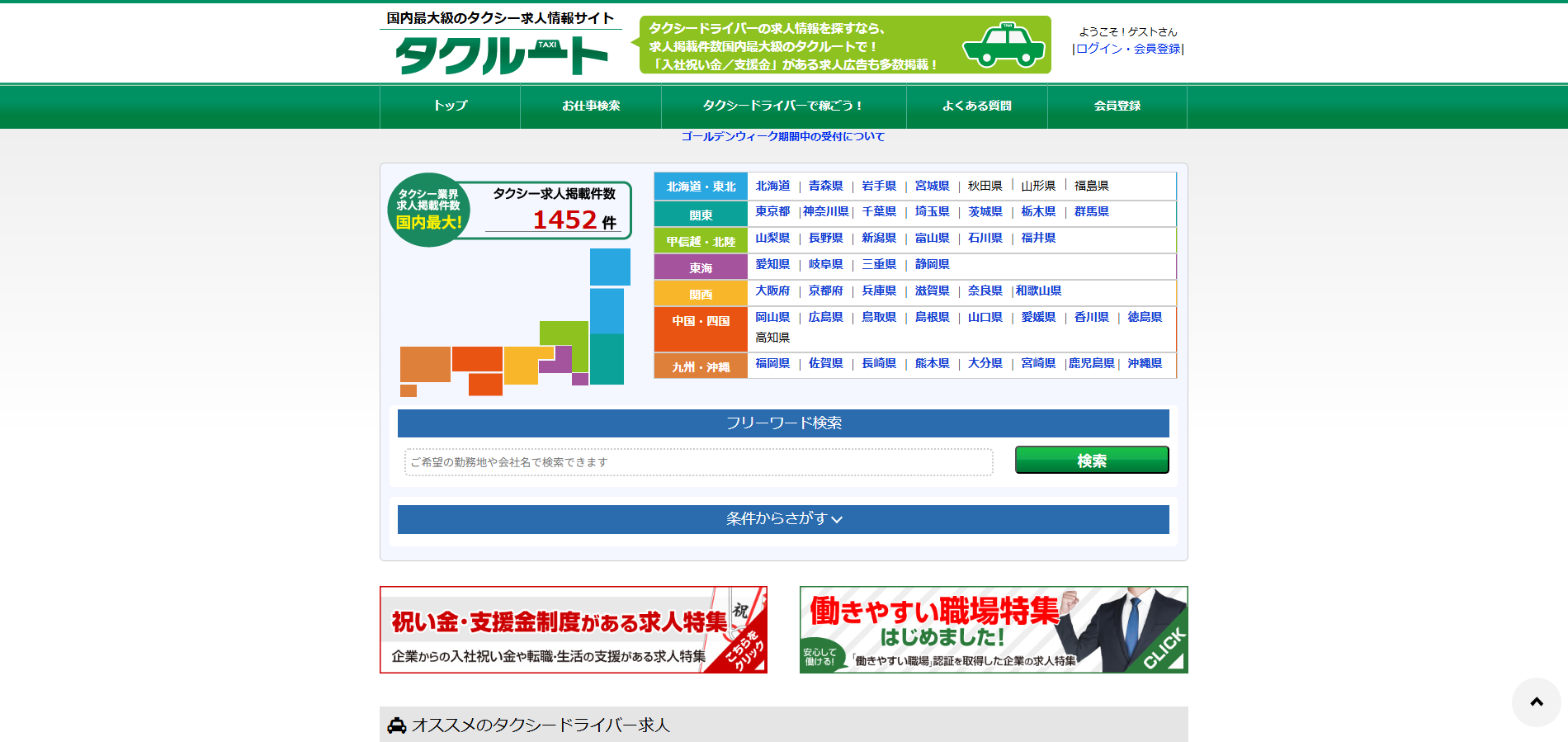 東京の大手4社をはじめ、各地の優良タクシー会社の求人情報を豊富に掲載しています。女性や20代・30代の若年層向けの求人情報やサポートも多いです。