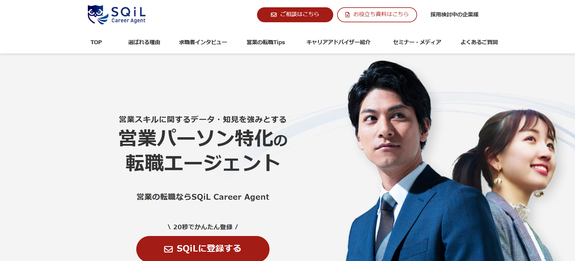 「SQiL Career Agent(スキルキャリアエージェント)」は、営業支援会社が提供する営業パーソン特化の転職エージェントです。