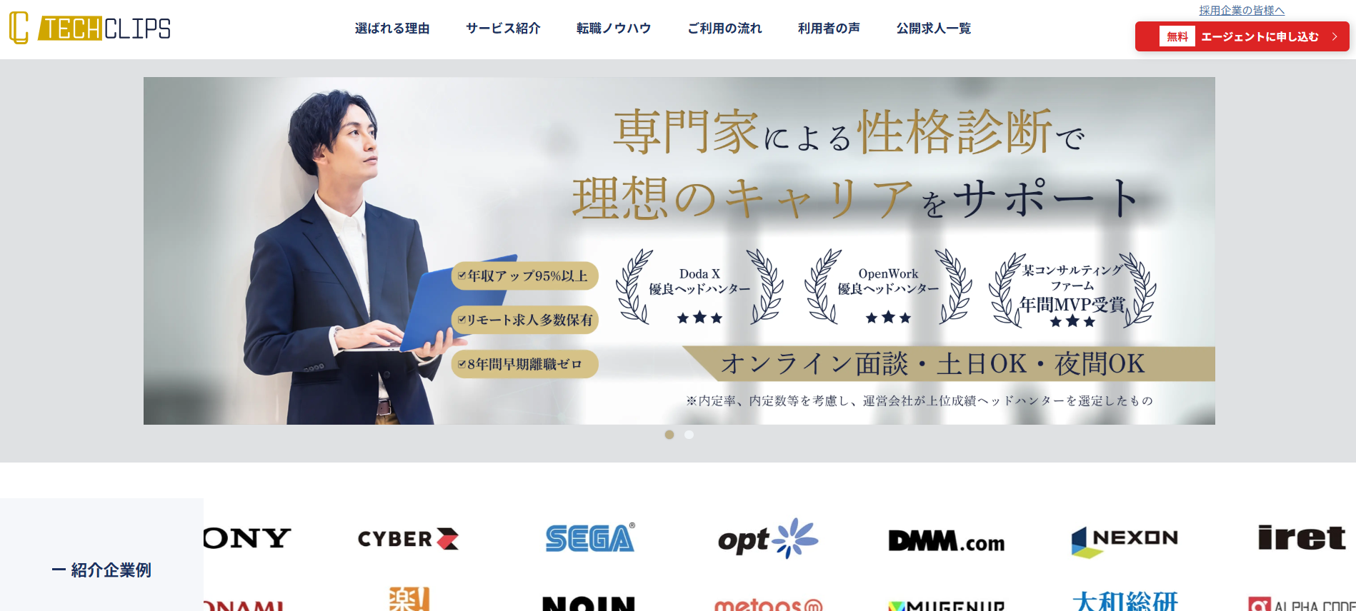 トップページからすぐに職種別のページに移動でき、テクニカルサポートなど希望の職種の求人がチェックしやすくなっています。転職エージェントとの一体型なので、アドバイザーのサポートも受けることが可能です。