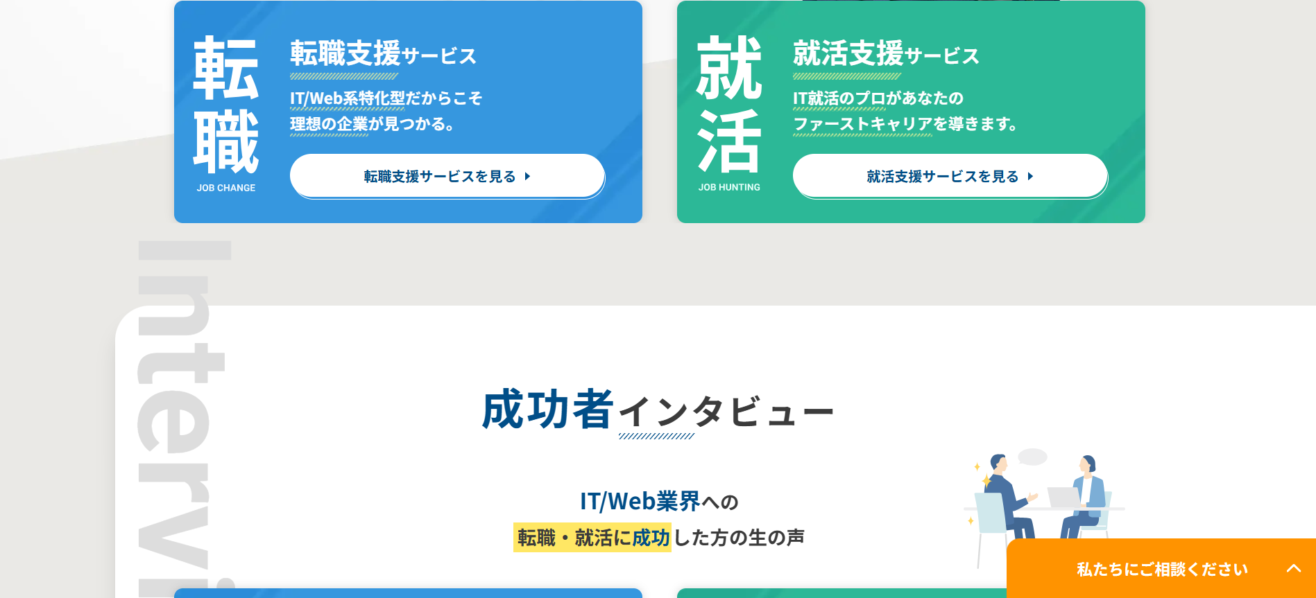 専任のキャリアアドバイザーがサポート、企業は別のプロフェッショナルが対応
