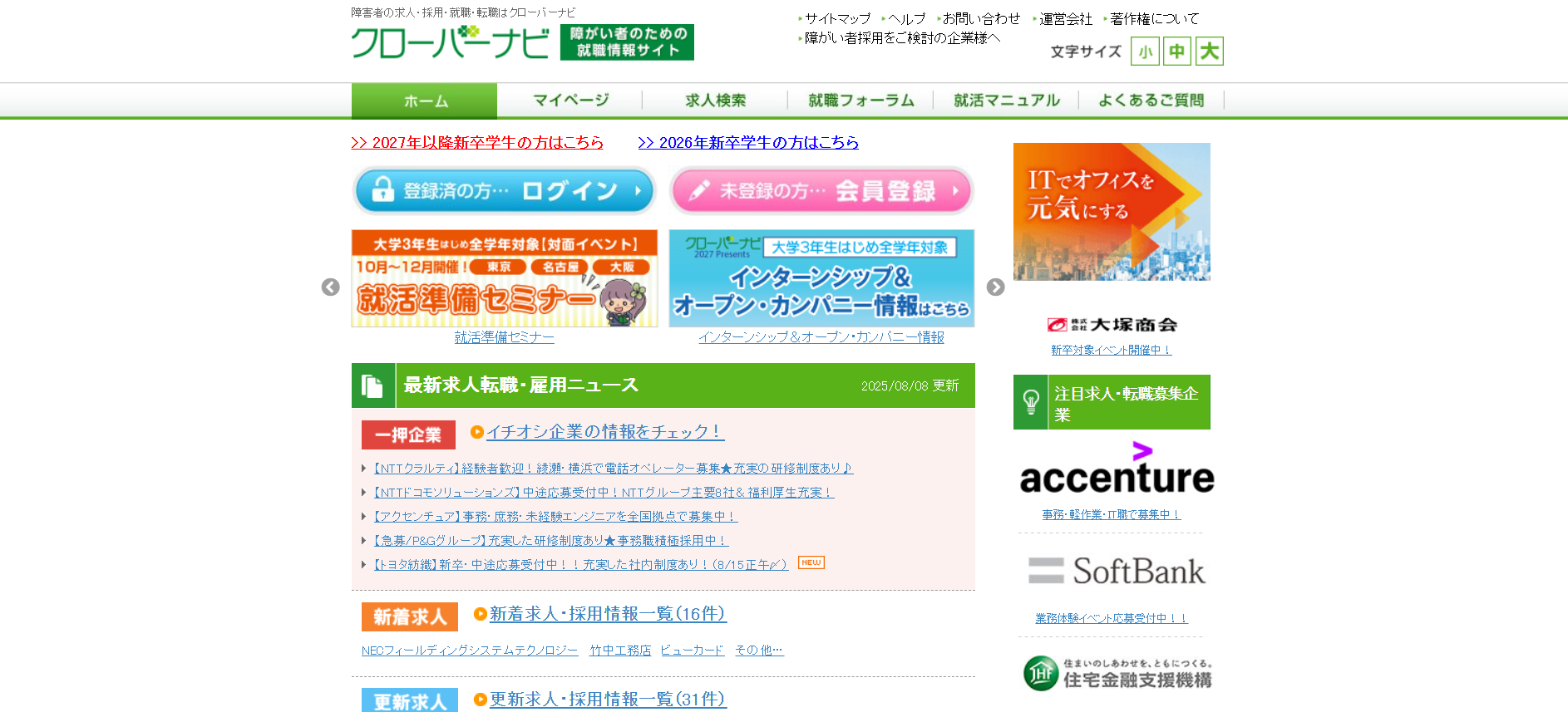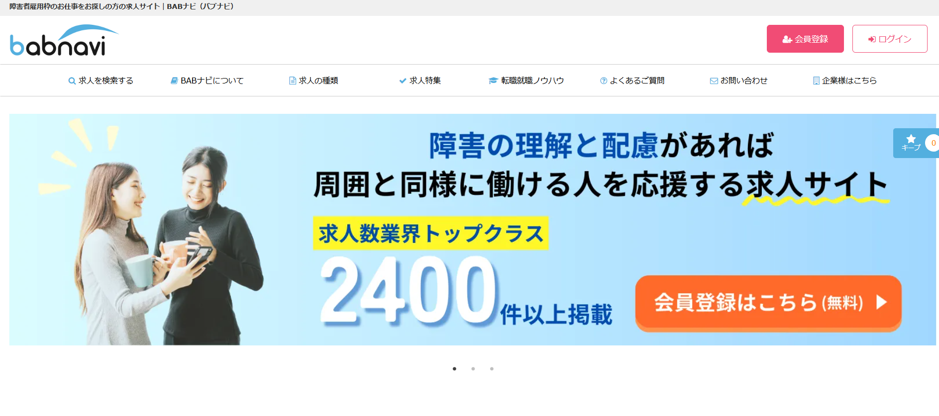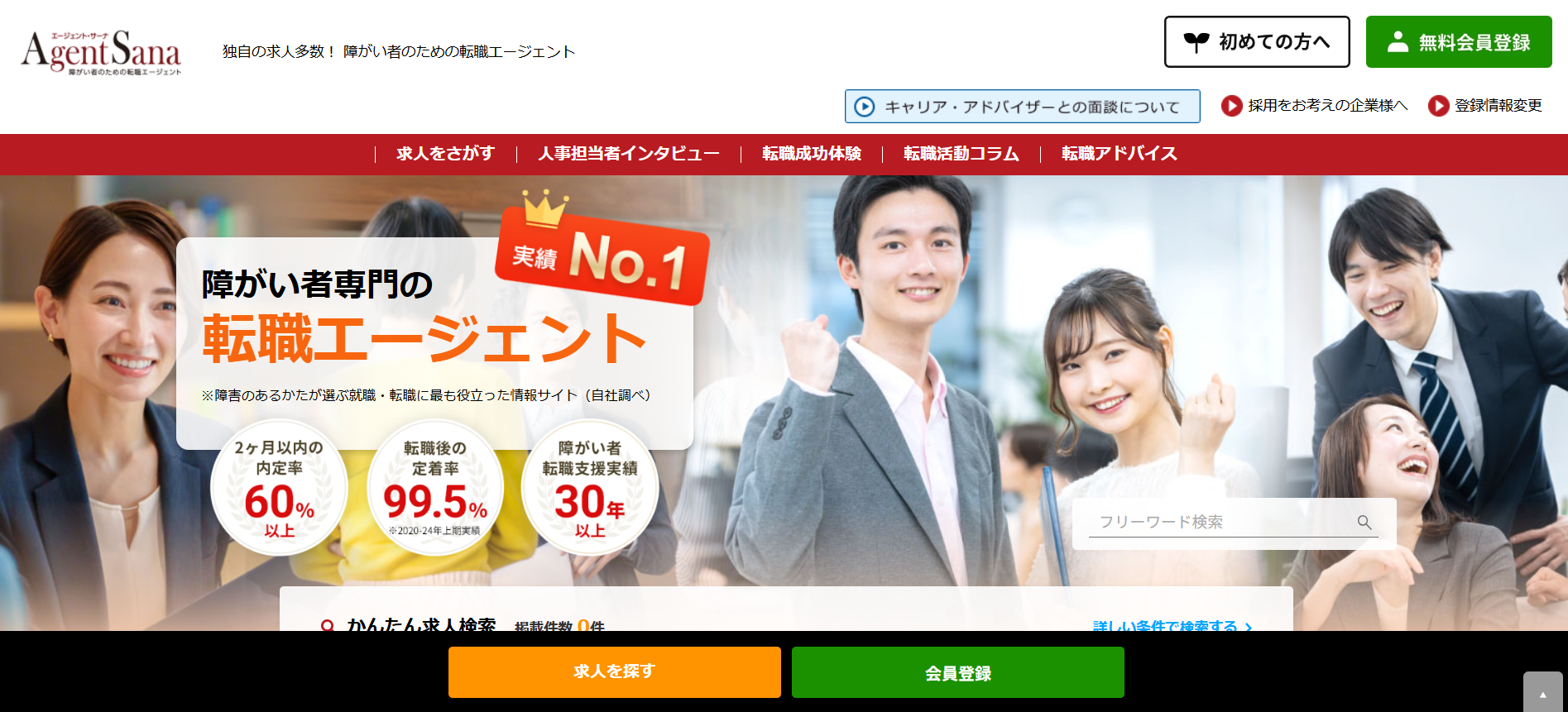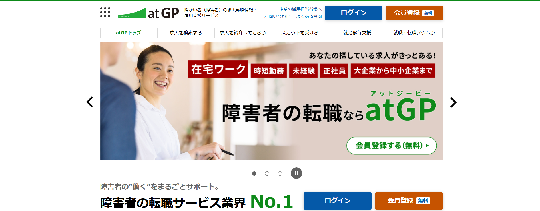 障がい(障害)のある方向けの転職エージェントとしては定番です。サイトの作りも、障がい(障害)のある方が自分に合わせた検索がしやすいようになっています。