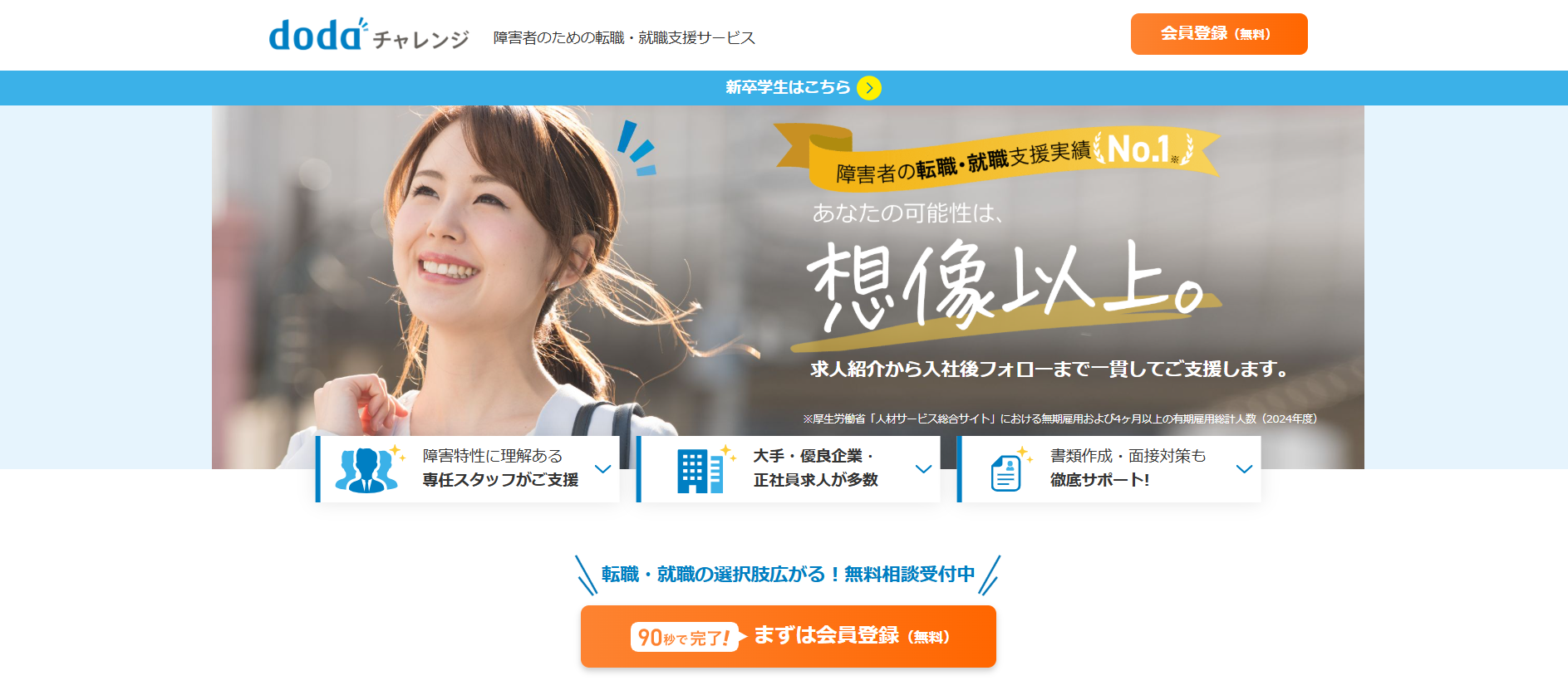 - 1.3 dodaチャレンジは幅広い求人を扱っておりサポートにも配慮あり
