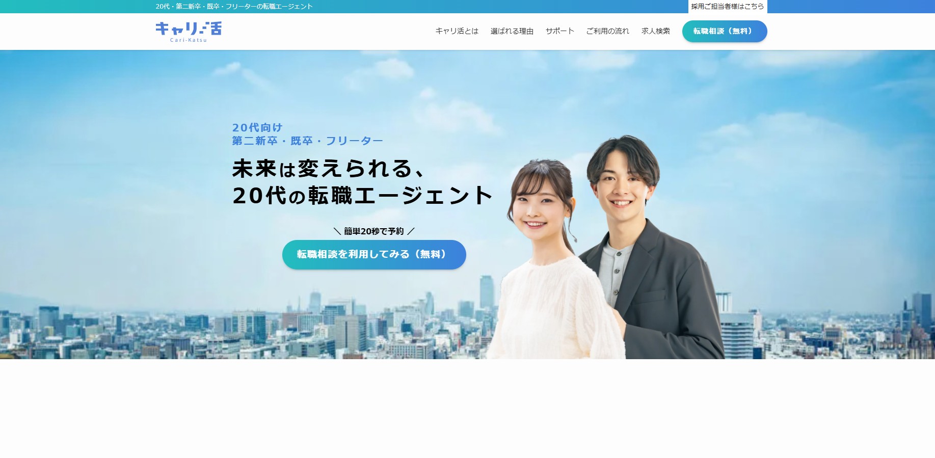 - 3.8 キャリ活は20代の転職に強みがある第二新卒・既卒に特化した転職エージェント