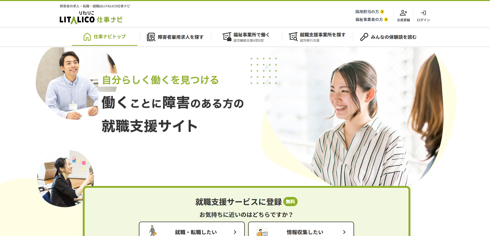 就労移行支援事業所や就労継続支援事業所の紹介など、トータルな転職・就業サービスを提供。ハローワークの情報もサイト内で確認できます。