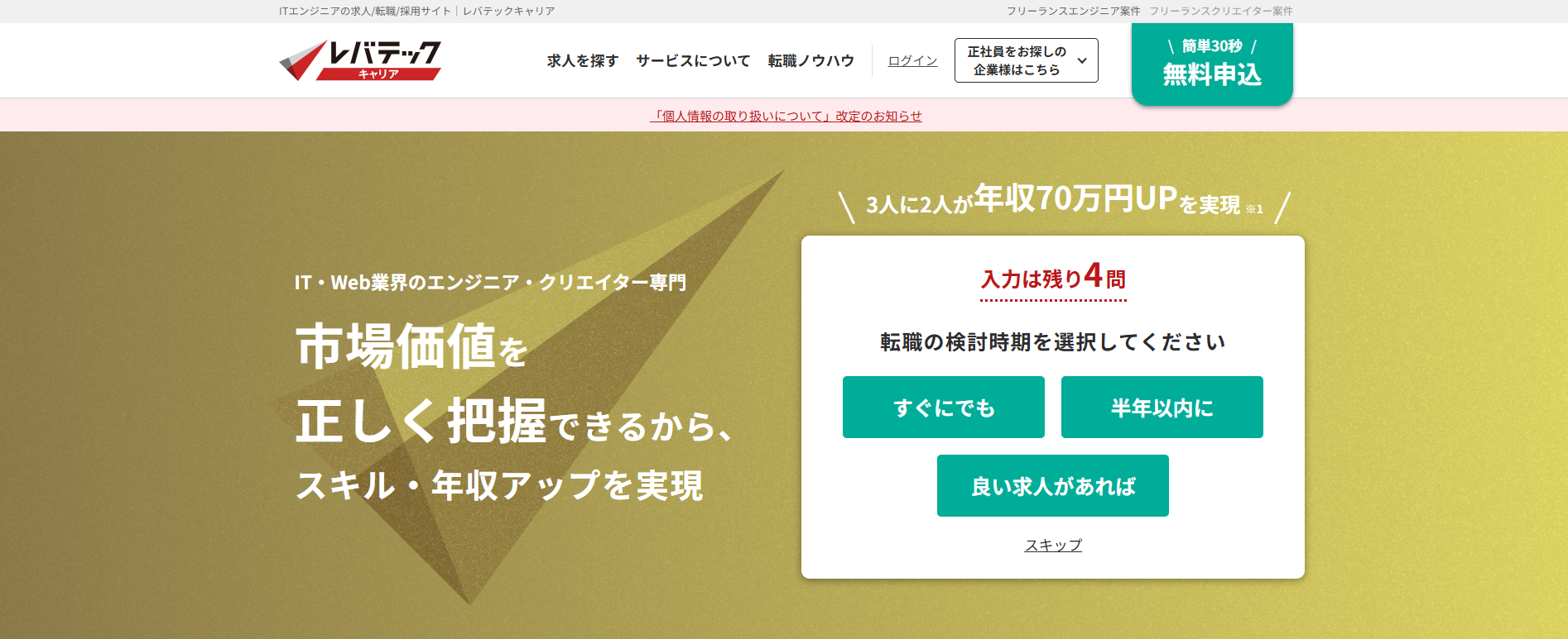 dodaも求人数が多く、自分の希望に合った企業に出会える可能性が高まります。さらに非公開求人も条件が良いものが多いのが大きなポイントです。