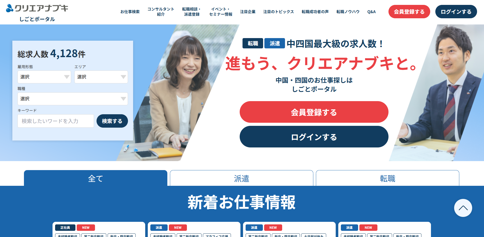 とくに20~30代の求人に強みがあります。全国に拠点があり地方の求人も充実しているので、大都市圏以外で仕事を探している人にも向いているでしょう。関西エリア・東海エリア・九州エリアはそれぞれに特化したページもあります。