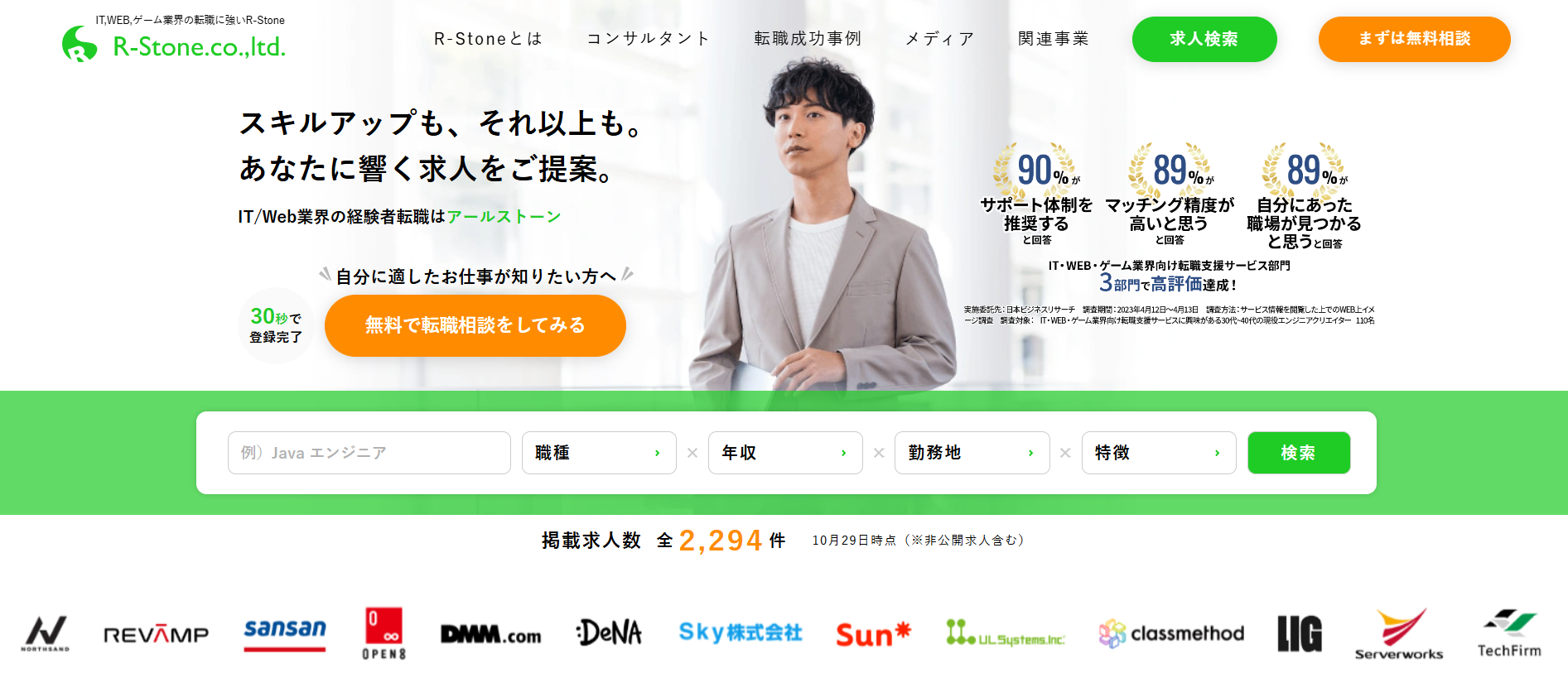 ITやWeb、ゲーム業界に特化しており、大手上場企業からベンチャー企業まで幅広く求人を保有しています。
