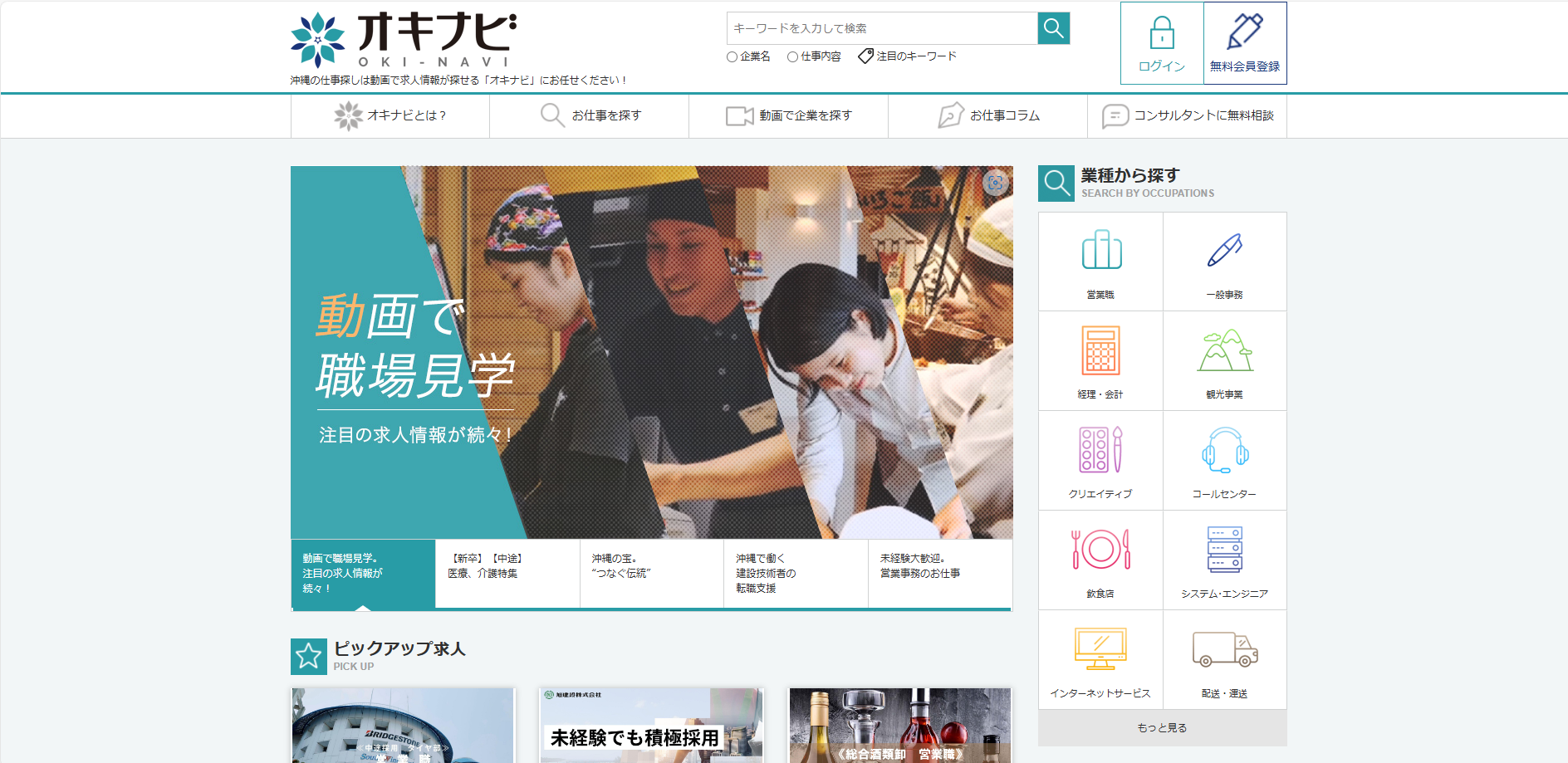 沖縄の求人を扱う転職サイトですが、転職エージェントとしても利用可能。企業によっては動画もあります。