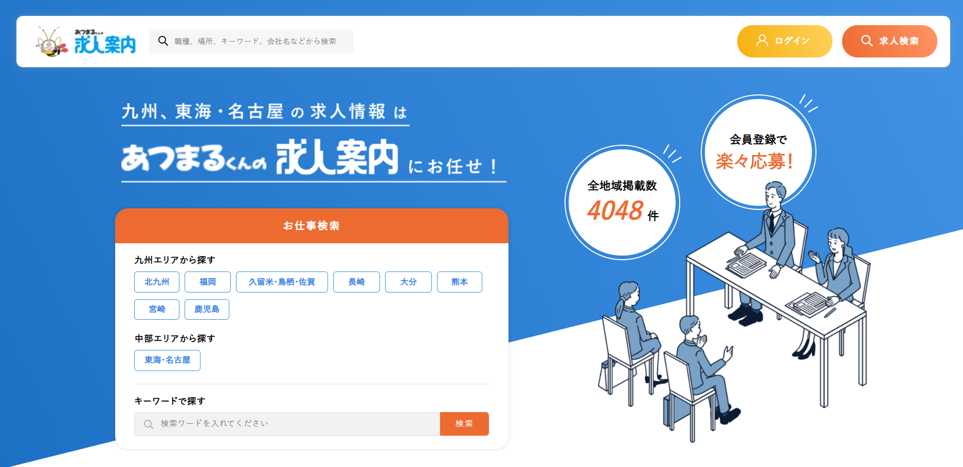 求人情報誌「あつまるくんの求人案内」のWeb版となる転職サイトです。九州の求人を中心に掲載しています。