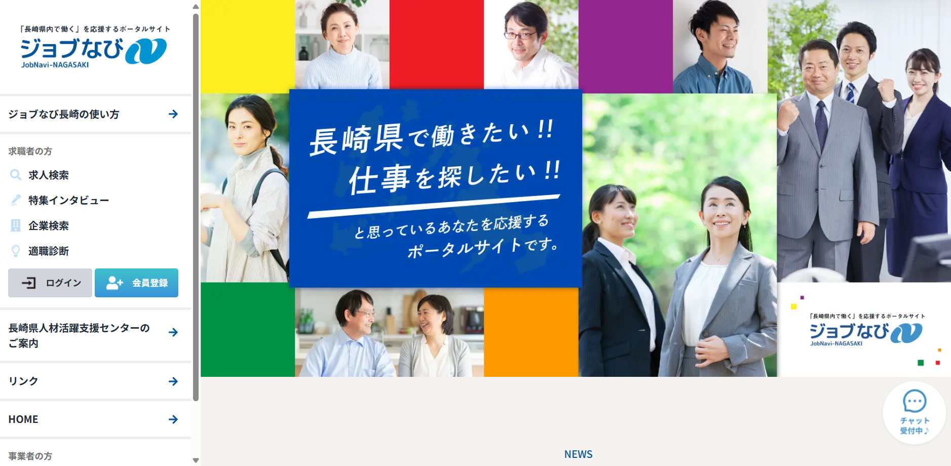 求職者と県内企業のマッチングを行う長崎県が提供するポータルサイトです。求人検索・会社検索に加え、適職診断もできます。